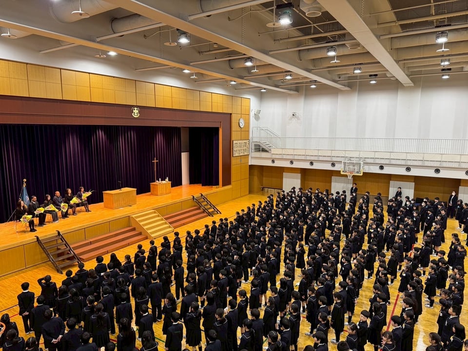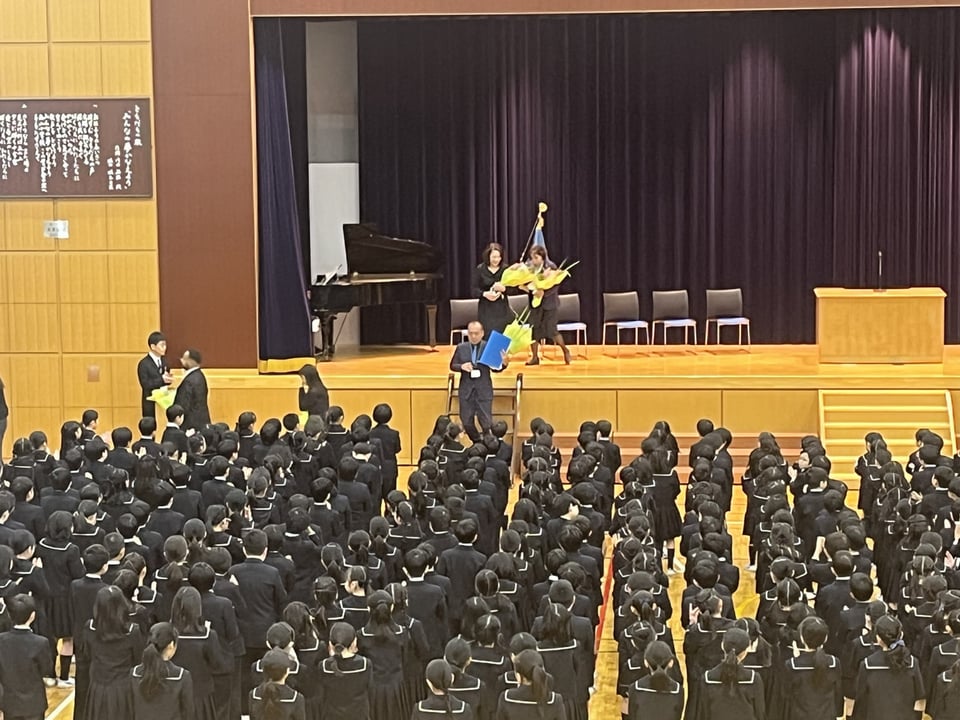 小学校では修了式に続いて退任式が行われ、先生方からの南山小への深い愛が感じられるお話に、涙を浮かべて別れを惜しむ子どもたちや先生方の姿がありました。